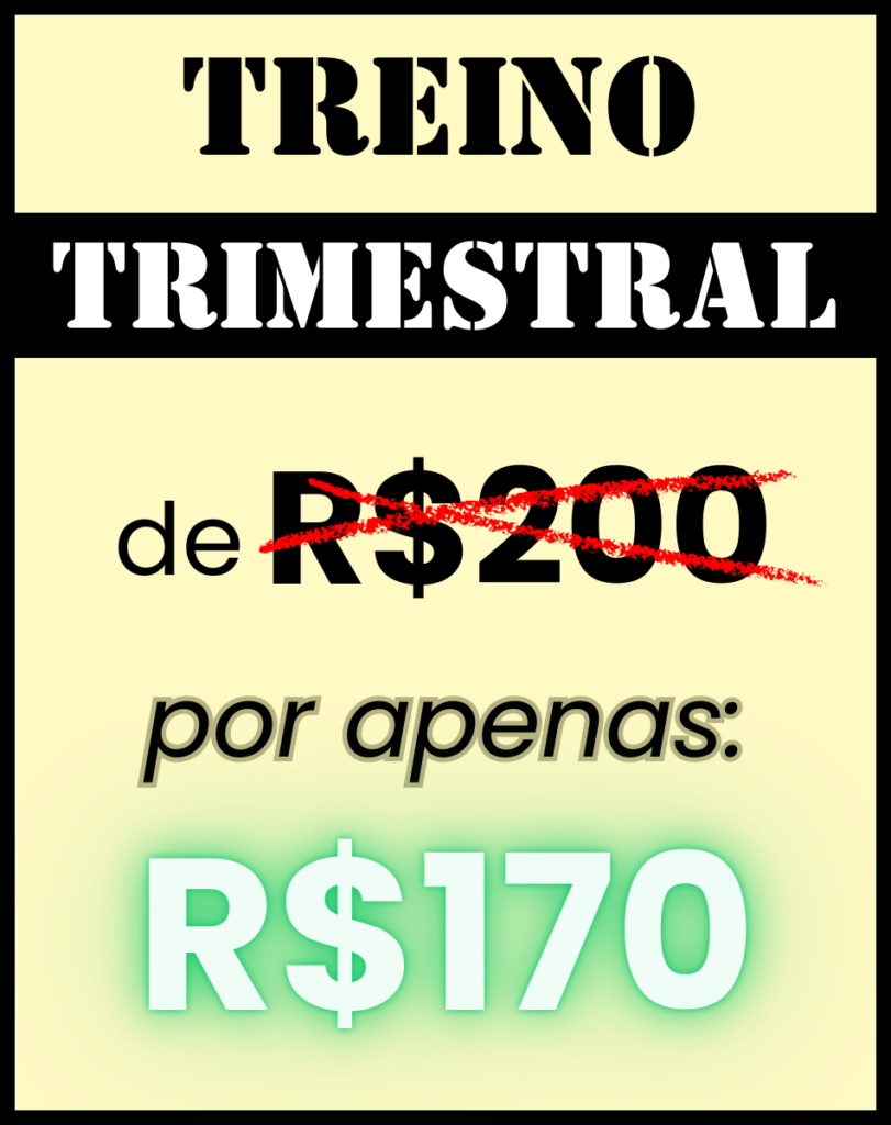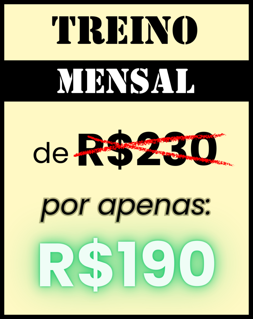 Você receberá um planilha de treinos individualizada para seu momento e disponibilidade!